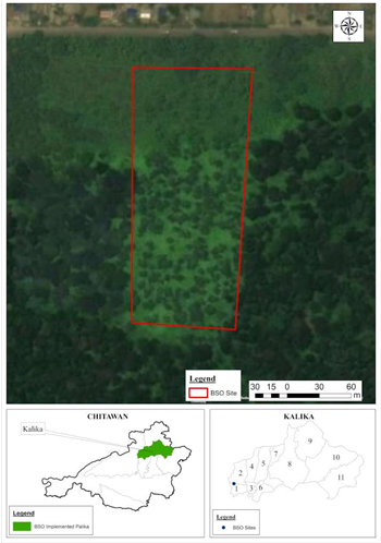 Accessibility: Adjacent to the Teelkane plantation and “35 families from Kailali” Dalbergia sissoo progeny trail (est. 1993), and the Dalbergia latifolia BSO” (est. 1994). 6 kilometers from Narayanghat, Chitwan District, Province No. 3 (Bagmati)